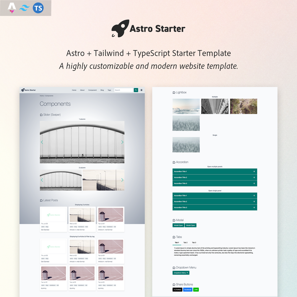 Blazing-fast Astro + Tailwind CSS starter template with reusable components